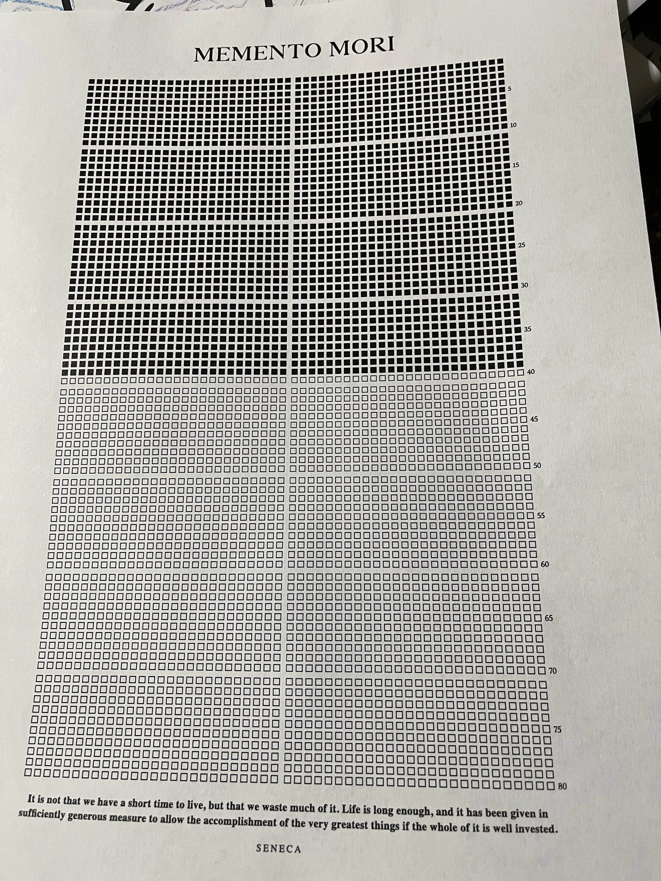 The pic below is a look at my Momemnto Mori countdown. When we zoom out on life, it’s not as long as we make it seem so we have to take advantage of all that we get while on the is rock.
